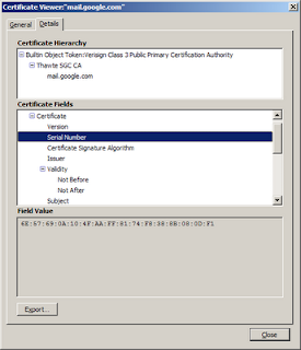 What we see in this picture is that Thawte uses an essentially random 16-byte value of "6E:57:69:0A:10:4F:AA:FF:81:74:F8:38:8B:08:0D:F1", instead of the Equifax, which uses a simple number like "643015".
