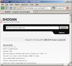 One of the problems of being white-hat hacker is that we scare ourselves. Such is the case of the "Shodan" engine that was released last month. It's a simple idea, one that has been discussed before. It simply scans the Internet for likely web server ports and indexes the HTTP headers that come back. Now that somebody has actually done it, and we can play with it, we find it's a lot scarier than we had imagined.What this means is that instead of finding an exploit that works on a target system, you can grab any exploit then find a system vulnerable to it.
