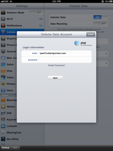 AT&T fixed this simply by no longer populating the login page with the e-mail address. Owners of the iPad now have to type in both their e-mail address and their password in order to login.