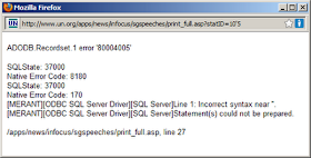 They have finally fixed the specific bug that led to their website being hacked (maybe because my blogpost last year was Slashdotted), but the site is full of similar SQL injection bugs. For example, if you click on "print this article", then use that URL instead, the SQL injection still works. This is shown in the picture below (using the URL http://www.un.org/apps/news/infocus/sgspeeches/print_full.asp?statID=10'5):