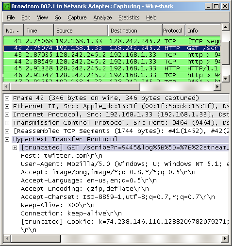 Second, FireSheep works only as well as the underlying packet-capture. On a Macintosh, the adapter can be fully promiscuous, capturing everybody's traffic on the local access-point. On Windows, some adapters (like Broadcom) will see all the traffic, others (like Intel) will only see your own traffic (useful for watching which of your own websites can be sidejacked, but not useful for sidejacking others).