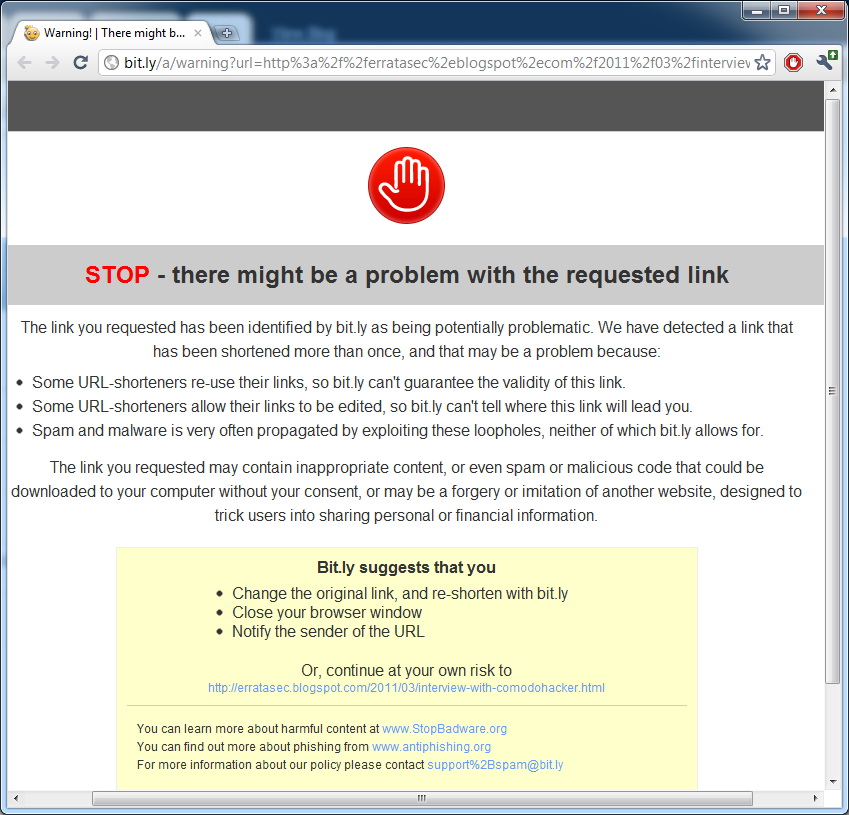 The link used to work just fine. For some reason, bit.ly decided to start blocking it with this page rather than forwarding.