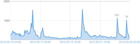 You can see that in the graph of traffic related to my previous blogpost on the hacker group known as "#Anonymous". I've labeled the graph as to the source of the various spikes.