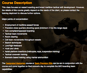 In this class I will learn how to employ a maritime assault force, non-compliant/opposed boarding, and hook and climb techniques. That’s all I need to board a craft and take the Wikileaks information by force.