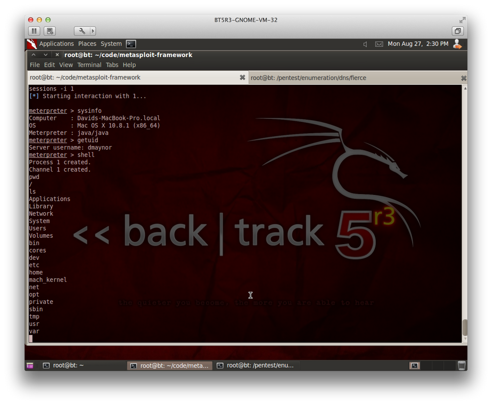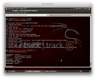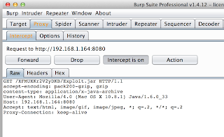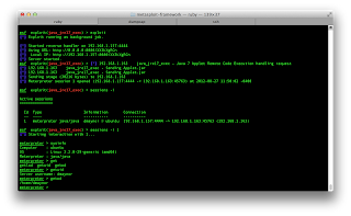 expect to get a lot of use out of! I tried it on OSX and it doesn't work out of the box completely. It looks like the exploit is getting triggered but not getting a shell. In the process list you can see a shell being started but I can't get it to connect to anything. For this, I also had to update my JRE as the one installed was 1.6 and it doesn't seem vulnerable.
