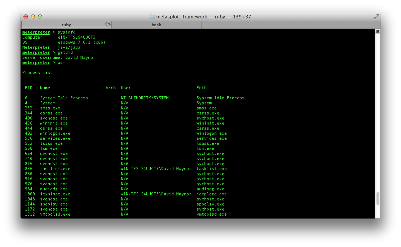 completions. I used the Meterpreter java payload (java/meterpreter/reverse_tcp)