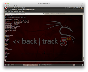 This exploit works on OSX if you are running the 1.7 JRE. It wasn't working for me at first because I thought I had updated it but the browser plugin was still running 1.6. After fixing that the exploit ran fine! I tested it on Firefox 14.0.1 and Safari 6.0 on OSX 10.8. The only weirdness is Meterpreter would show any processes and when you run a shell you get no prompt. I first noticed these oddities when I wrote the Apple wireless exploit and burned a ton of time trying to figure out why. I just learned to accept it.