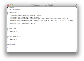 ReplyDelete@6:59 The same solution to the same problem: if somehow you grab the MAC Address of another machine, do another ifconfig, or if you're Terminal shy, restart the machine if that startup script is in place. But I bet you're struck by lightning first before that happens.