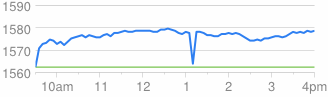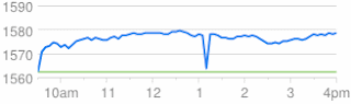 So how does the press create a story that it plunged? By changing the baseline. Instead of using '0' as the baseline, they use a baseline of '1560'. This magnifies the change for dramatic purposes. It makes the graph look like the following:
