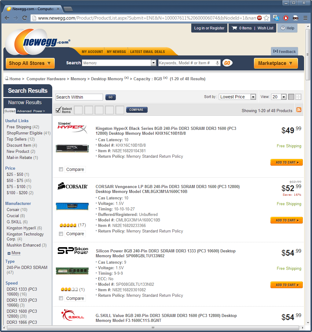 To preserve today's prices, I've got screenshots to show this. Below are the NewEgg and spot market prices that I captured right this second: