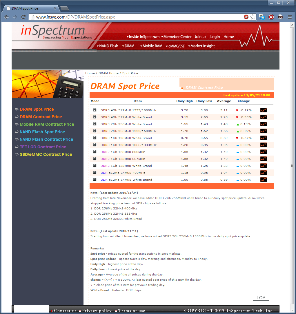 Update: On twitter, somebody has accused me of cherry picking this data. I didn't. I did my best to get averages. I googled "DRAM spot price" and got two different sources: