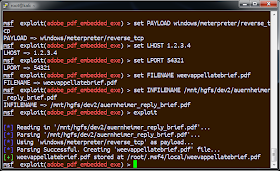 Let me prove it. Below is a screenshot of me adding malware to Hanni's PDF brief. I'm using a very old, very easily detectable exploit:
