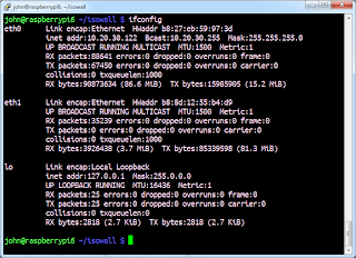 The command-line on the Raspberry Pi looks like the following. As you can see, the infected laptop has an IP address of 10.20.30.207 and connects via 'eth1', but it can only exchange packets with the local router (and hence the Internet), and not any of the other devices on the local network.