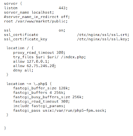 Notice firstly that the "listen 443" specifies only a port number and not an IP address. Consequently, anybody on the Internet could connect to the server and obtain its SSL certificate, even if it cannot get anything but an error message from the web server. Brian Krebs quotes Nicholas Weaver as claiming "This suggests that the Web service specifically refuses all connections except from the local host and the front-end Web server". This is wrong, the web server accept all TCP connections, though it may give a "403 forbidden" as the result.