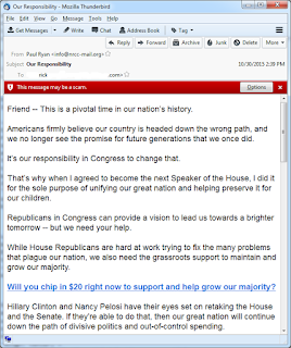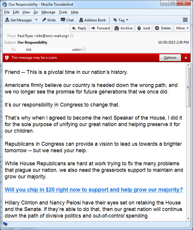 The other email was from Paul Ryan asking for donations to the NRCC. Apparently, the reason Paul Ryan took the job of Speaker was solely for the children.
