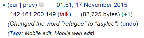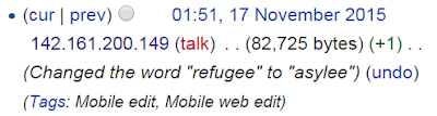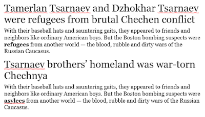 For example, the Wikipedia page on Tsarnaev changed, purging the word "refugee" and replacing it with "asylee".