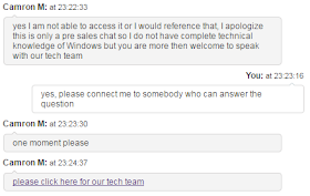 So at first he says they are the same. When I press him on the difference, he then admits they are different. He can't read the document I'm reading, because it's on a non-Microsoft "third party" site. While it's true it's on "windows.net", that's still a Microsoft site, but apparently he's not allowed to access it. I appears Microsoft firewalls their access to the Internet so jerks like me can't social engineer them.
