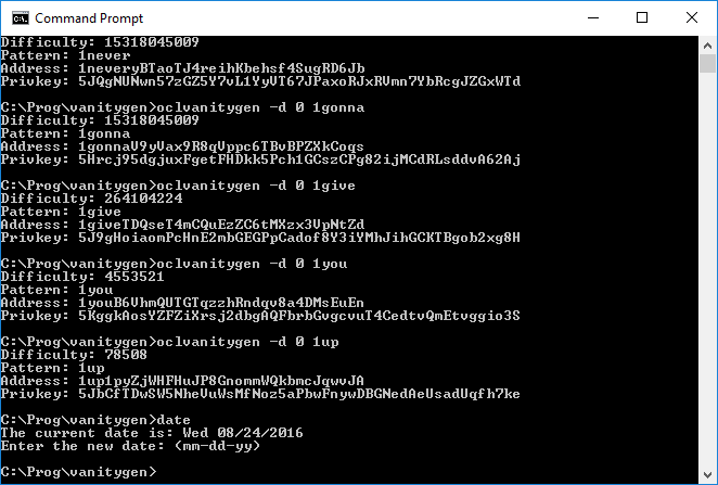 | Creating vanity addresses, for rickrolling or other reasons |