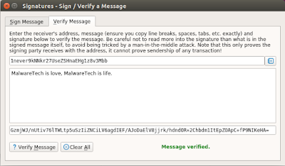 Far from the government being involved, somebody else took credit for the hack, with the Twitter handle @MalwareTechBlog. In a blogpost [*], he describes what he did. He then proves his identity by signing a message at the bottom of his post, using the same key (the 1never.... key above) in his tricks. Below is a screenshot of how I verified (and how anybody can verify) the key.