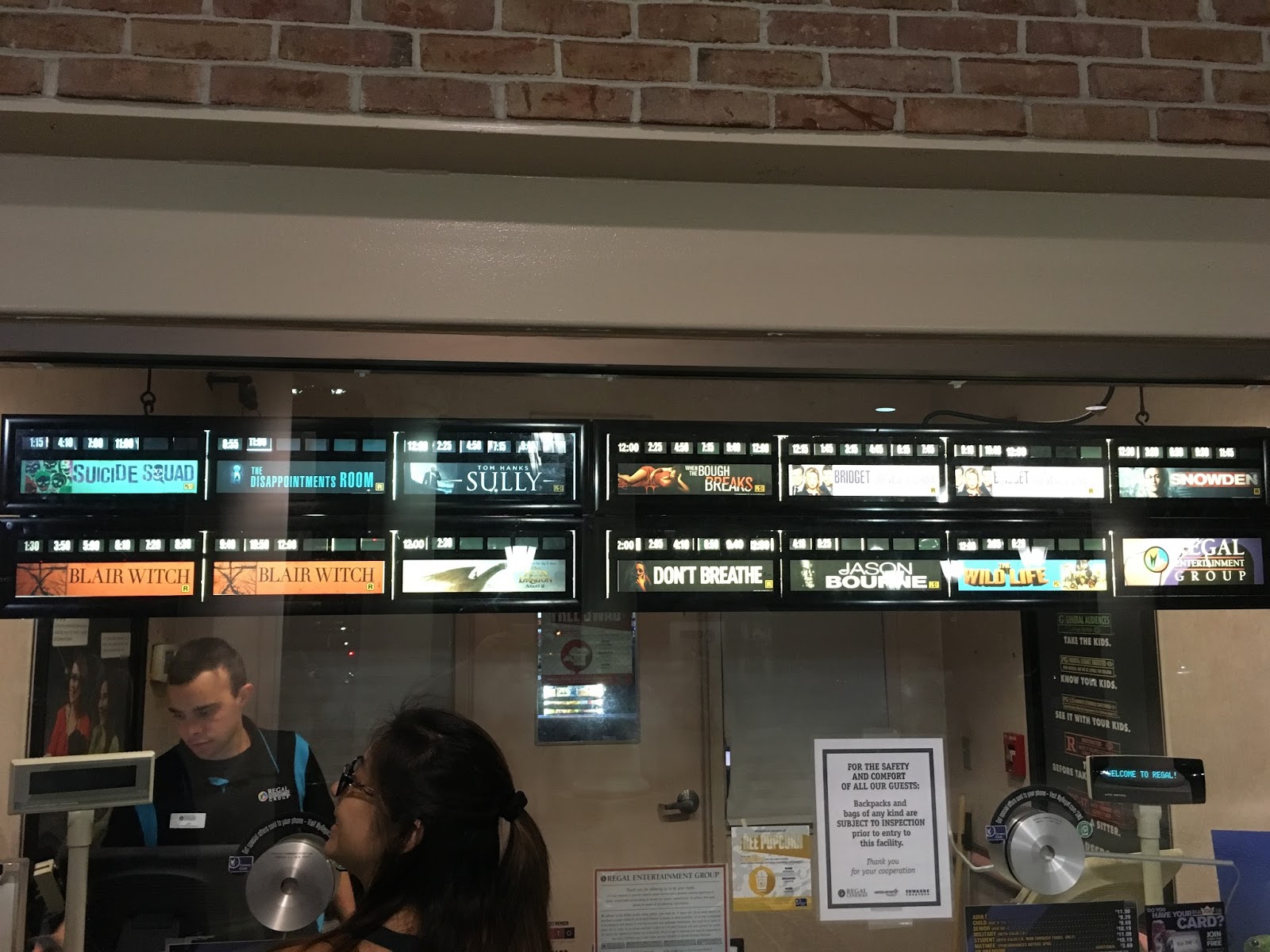 Finally, there's watching everyone else in the audience. They seemed to like it, and they seemed to "get" the key points the director was trying to make. It was a rather slow Friday night for all the movies being shown, so the theater wasn't empty, but neither was it very full. I'd guess everyone there already had some interest in Snowden. Obviously, from the sign out front, they don't expect as much interest in this film as they do in Bridget Jones' Baby and Blair Witch 2.