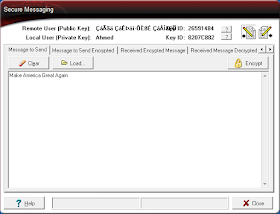 This software encrypts, but does not send/receive messages. You have to do that manually yourself. It's intended that terrorists will copy/paste this text into emails. They may also paste the messages into forum posts. Encryption is so good that nobody, not even the NSA, can crack properly encrypted messages, so it's okay to post them to public forums, and still maintain secrecy.