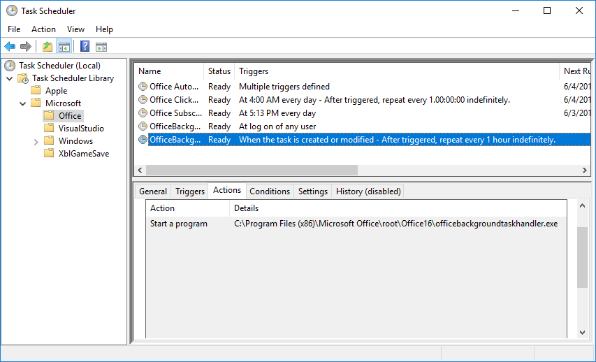 You can also double-click, to open the Task Scheduler, and see the specific configuration. You can see here that this thing is scheduled to run every hour: