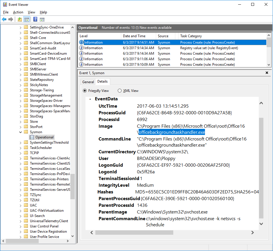 Applications and Services Logs\Microsoft\Windows\Sysmon\operational