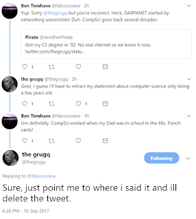Again, we have the text/subtext problem, where people interpret infosec degrees as being the same as computer-science degrees, the later of which have existed for decades. Some, as in this case, consider them to be wildly different. Others consider them to be nearly the same.
