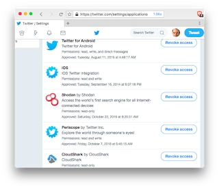 Now would be a good time to go through your relatives Facebook, Twitter, and Google/GMail and disable those apps. Don't be a afraid to be ruthless -- they probably weren't using them anyway. Some will still be necessary. For example, Twitter for iPhone shows up in the list of Twitter apps. The URL for editing these apps for Twitter is https://twitter.com/settings/applications. Google link is here (thanks @spextr). I don't know of simple URLs for Facebook, but you should find it somewhere under privacy/security settings.