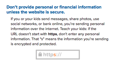 "teach your kids if the URL does not start with https, don't enter personal information"