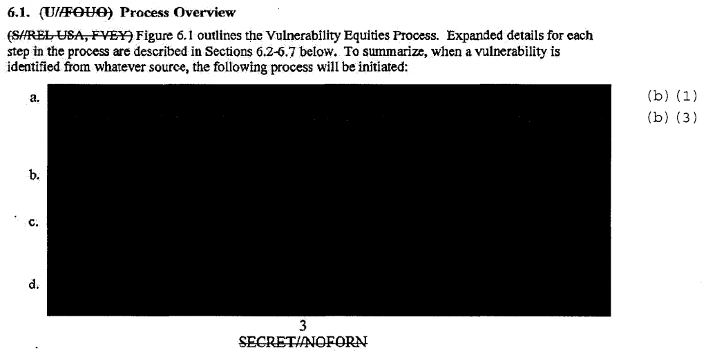 But we know what the redacted equities are about "offensive" use of vulns, in particular, for intelligence and for military operations.